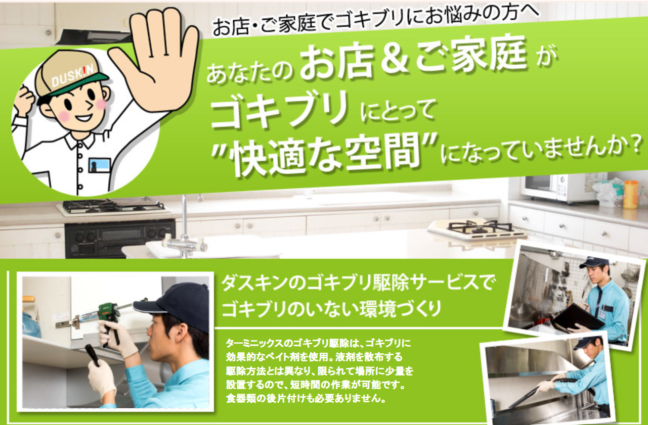だから、丁寧な仕事と対応で定評のあるゴキブリ駆除のダスキンターミックスに無料診断をお願いしてみてはいかがですか。