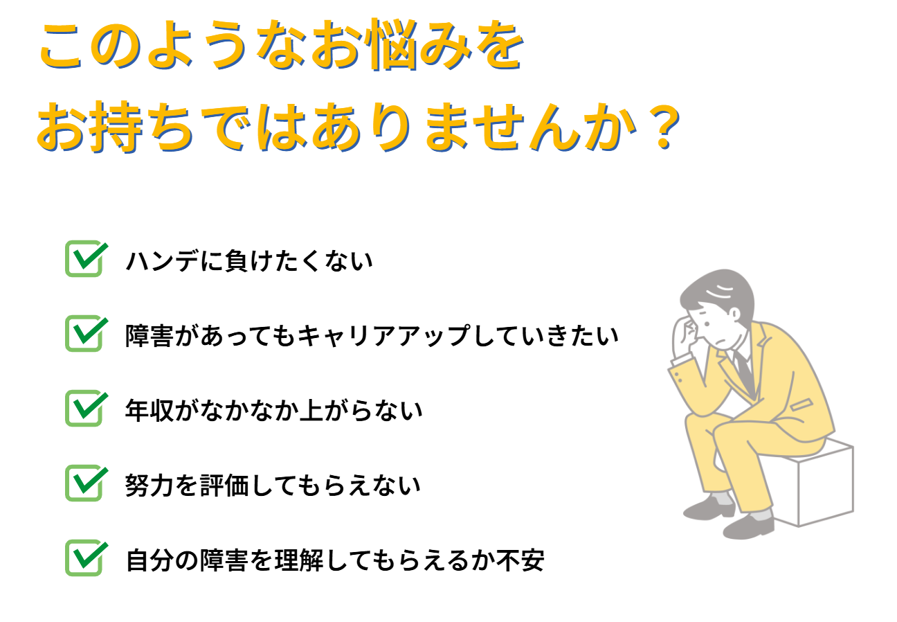 多くの身体障害をお持ちの方が、以下のような悩みを抱えながら働いています。