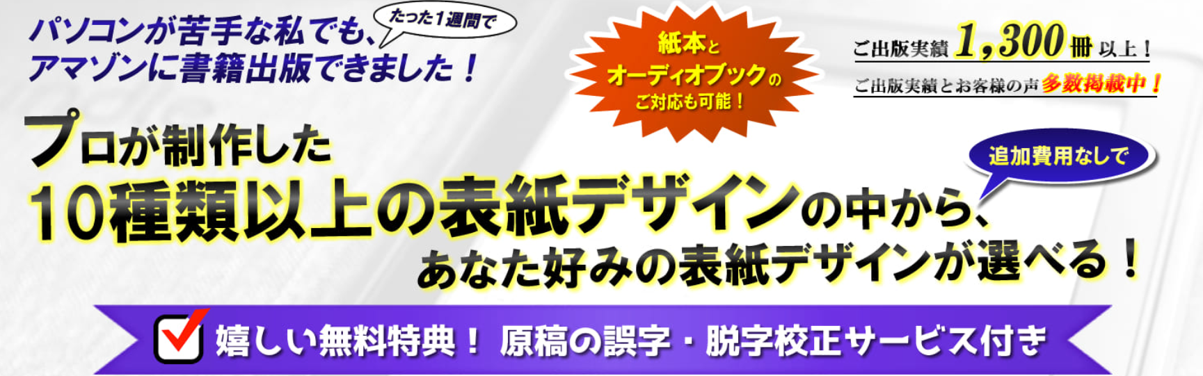 私たちのサービスは、単なる「登録のお手伝い」ではありません。これまでAmazonへの出版実績は1,000冊を超え、様々なジャンルの著者様をサポートしてきました。