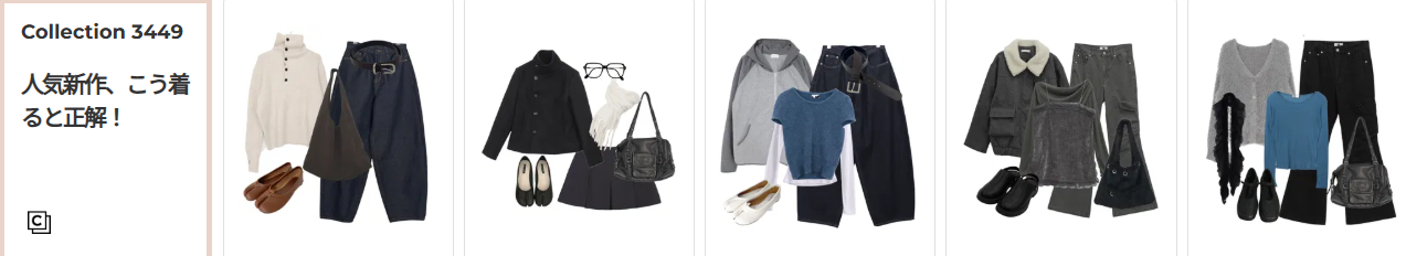プロ顔負けの組み合わせ術を参考にしながら、そのまま「セット買い」することも可能。自分では思いつかなかった新しいスタイルに出会えるのも、Codibookならではの楽しみ方です。